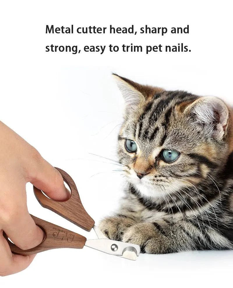 Sustainable Pet Grooming Set with wooden comb and stainless steel nail clipper for eco-friendly pet care.