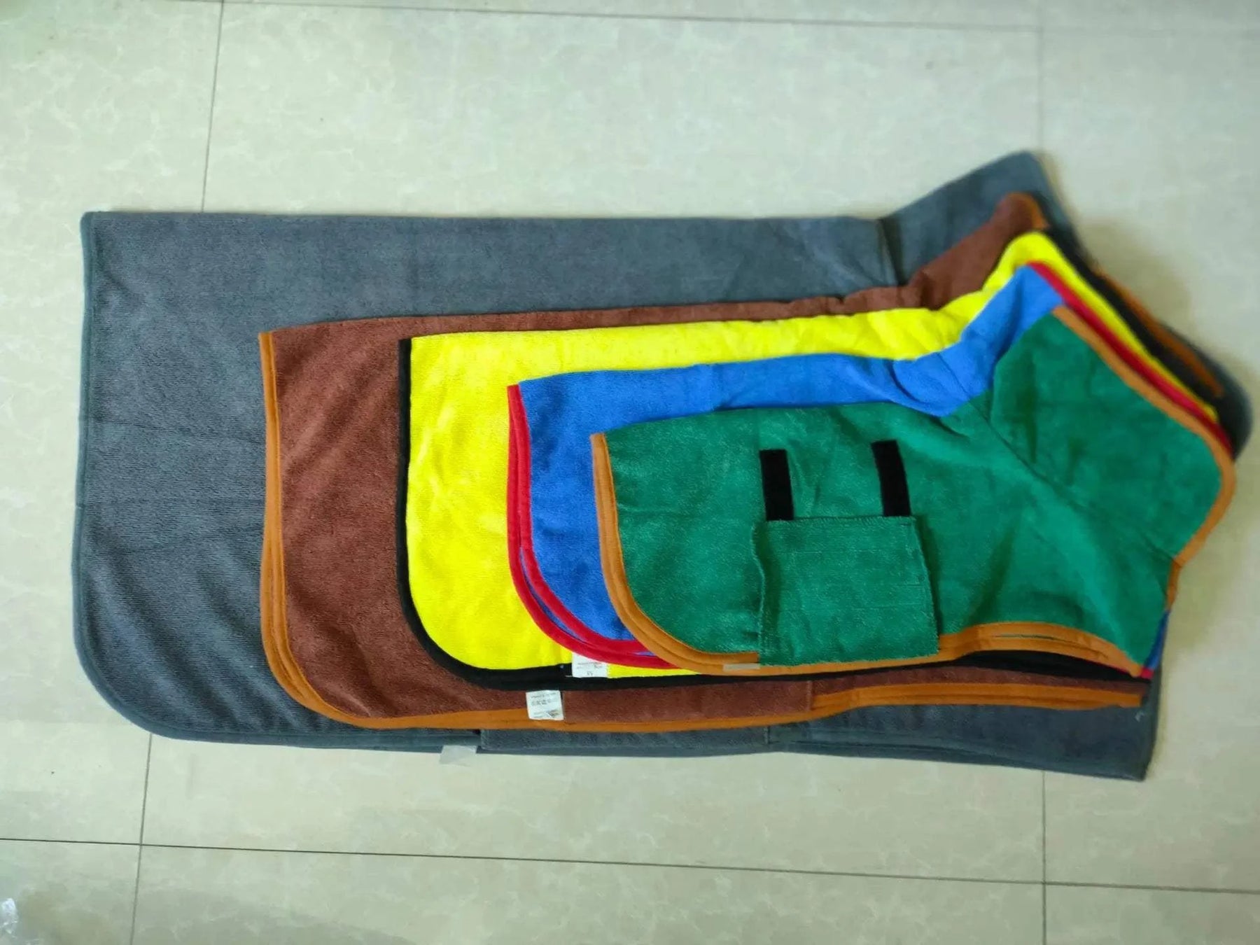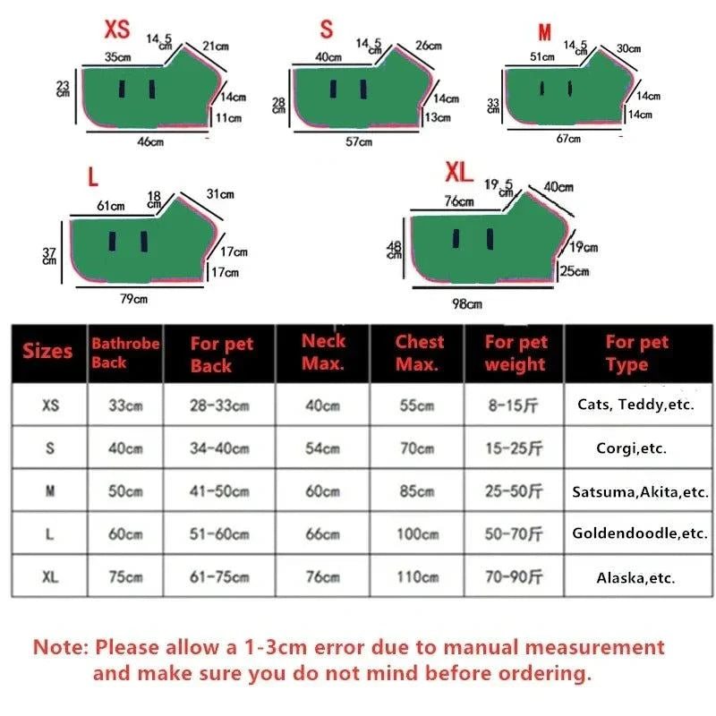 Quick-Dry Pet Bathrobe for dogs and cats, made from absorbent microfiber material, available in various sizes.
